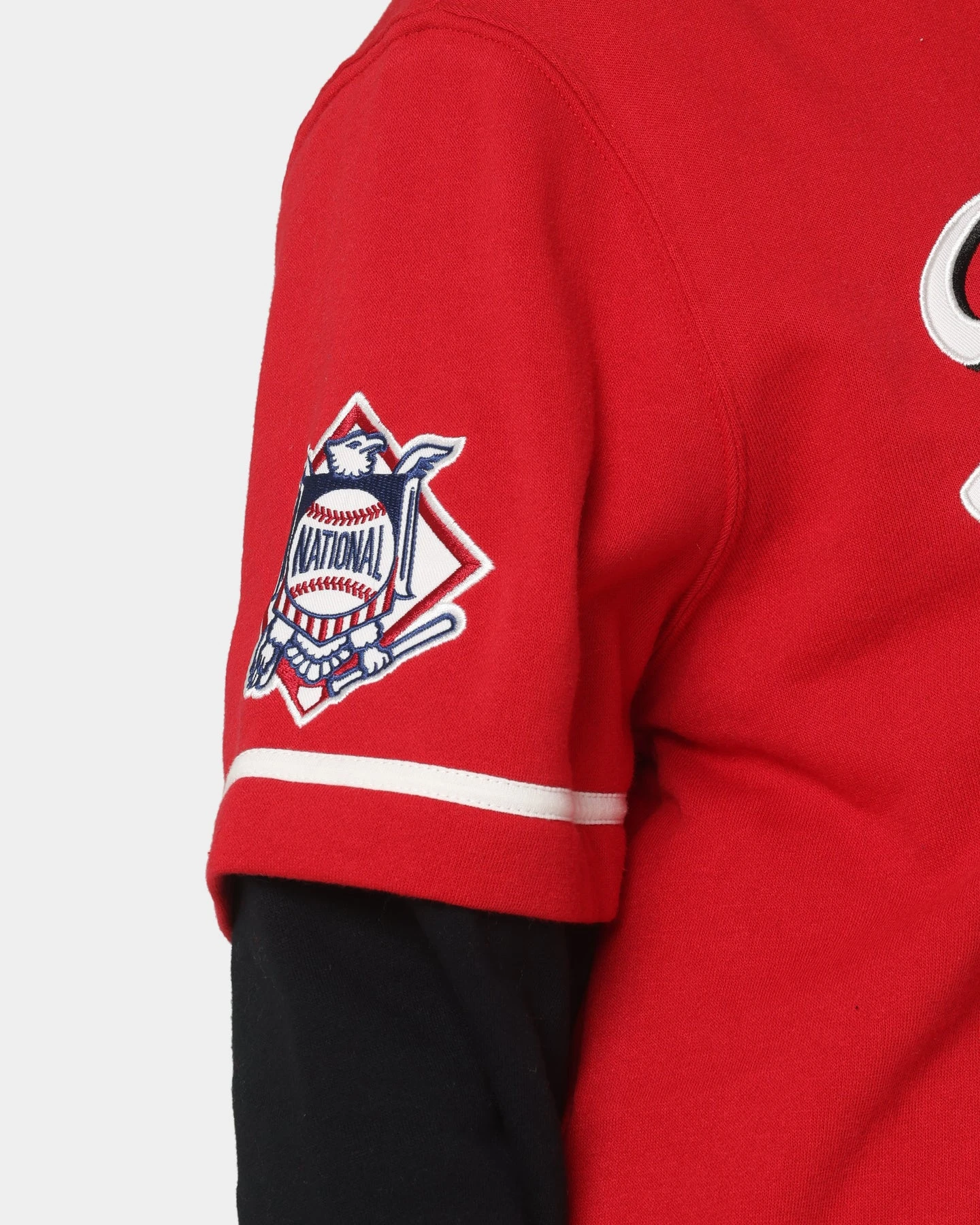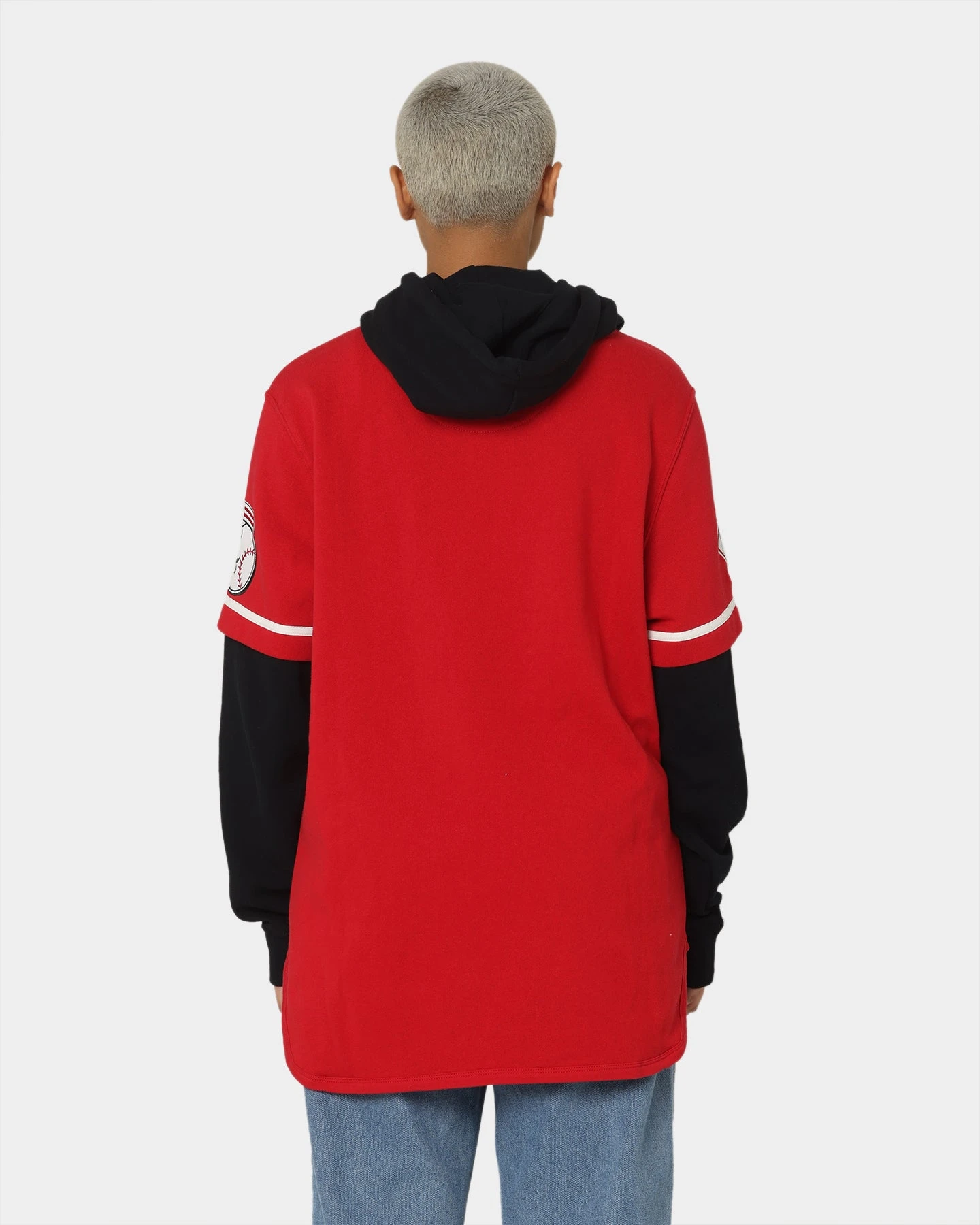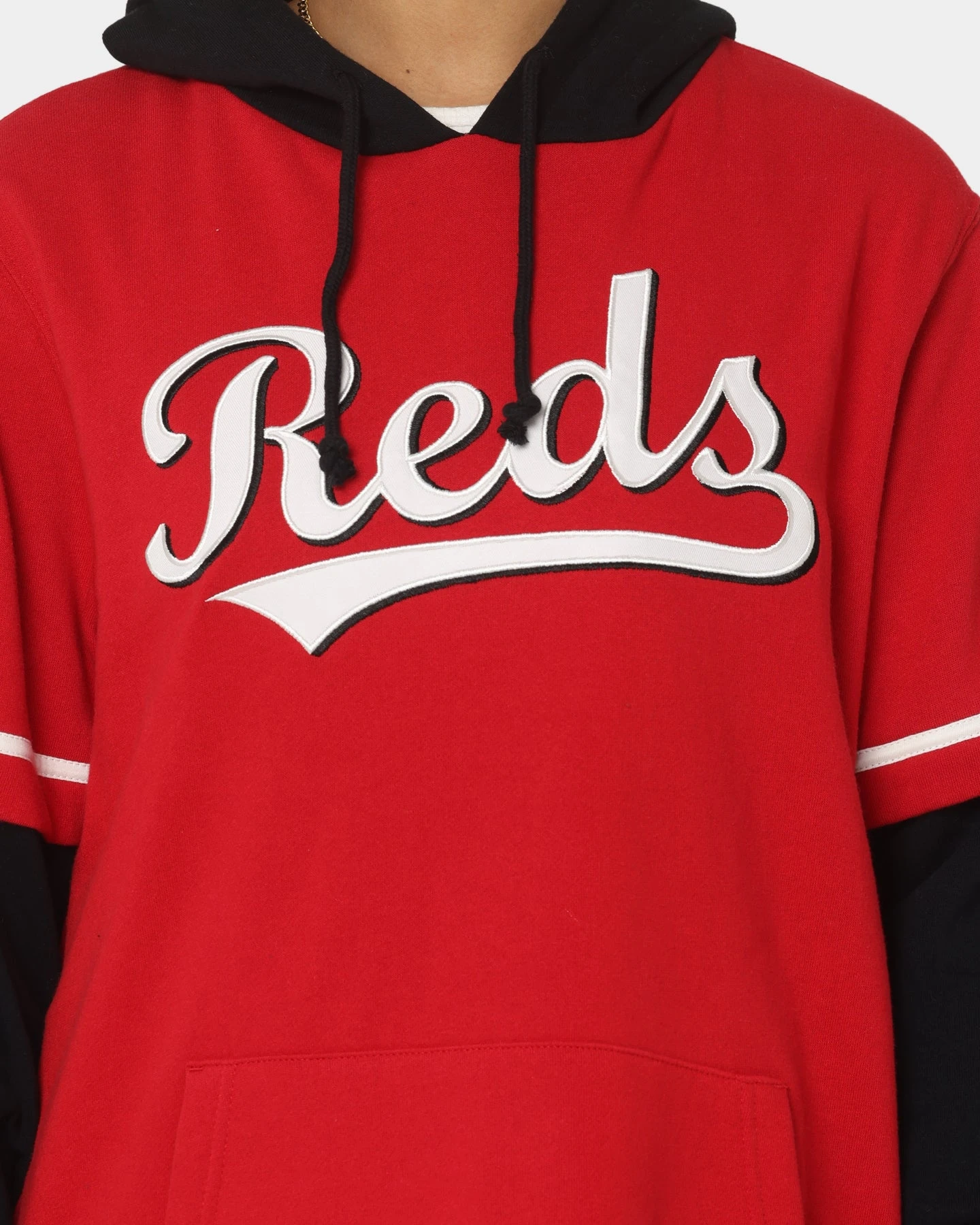 Combine your love of sports and streetwear by copping the Cincinnati Reds Shortstop Hoodie. This bold hoodie features contrast sleeves and hood, a layered look, and embroidered team logos on the sleeves and chest. Don’t sleep on this iconic hood.