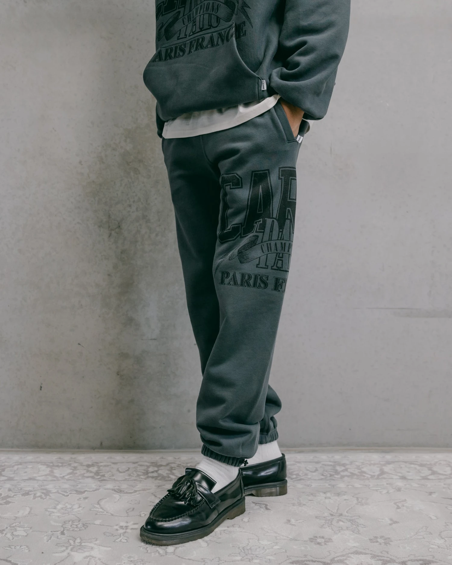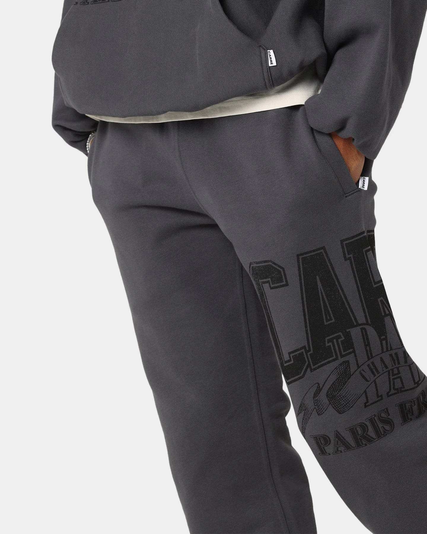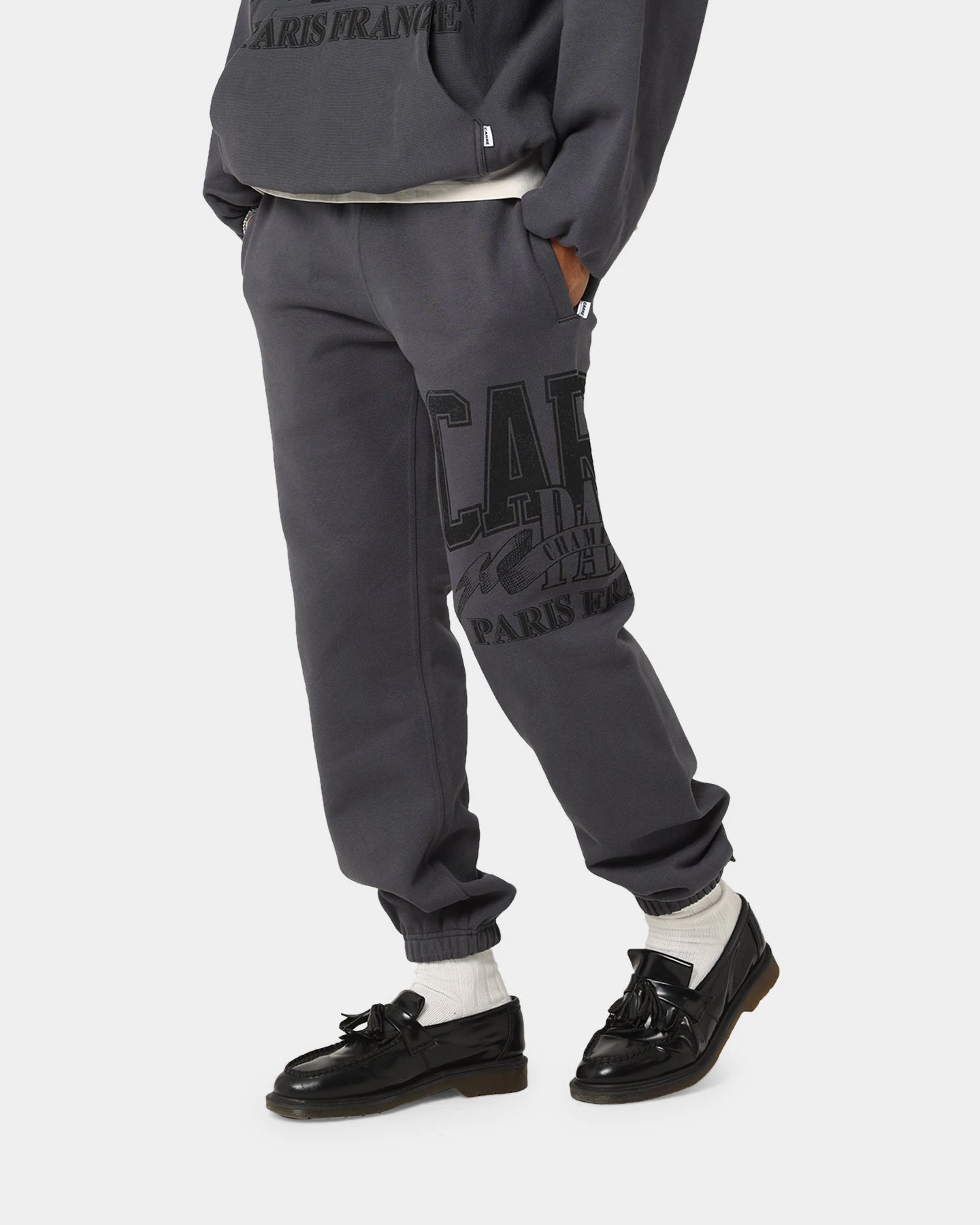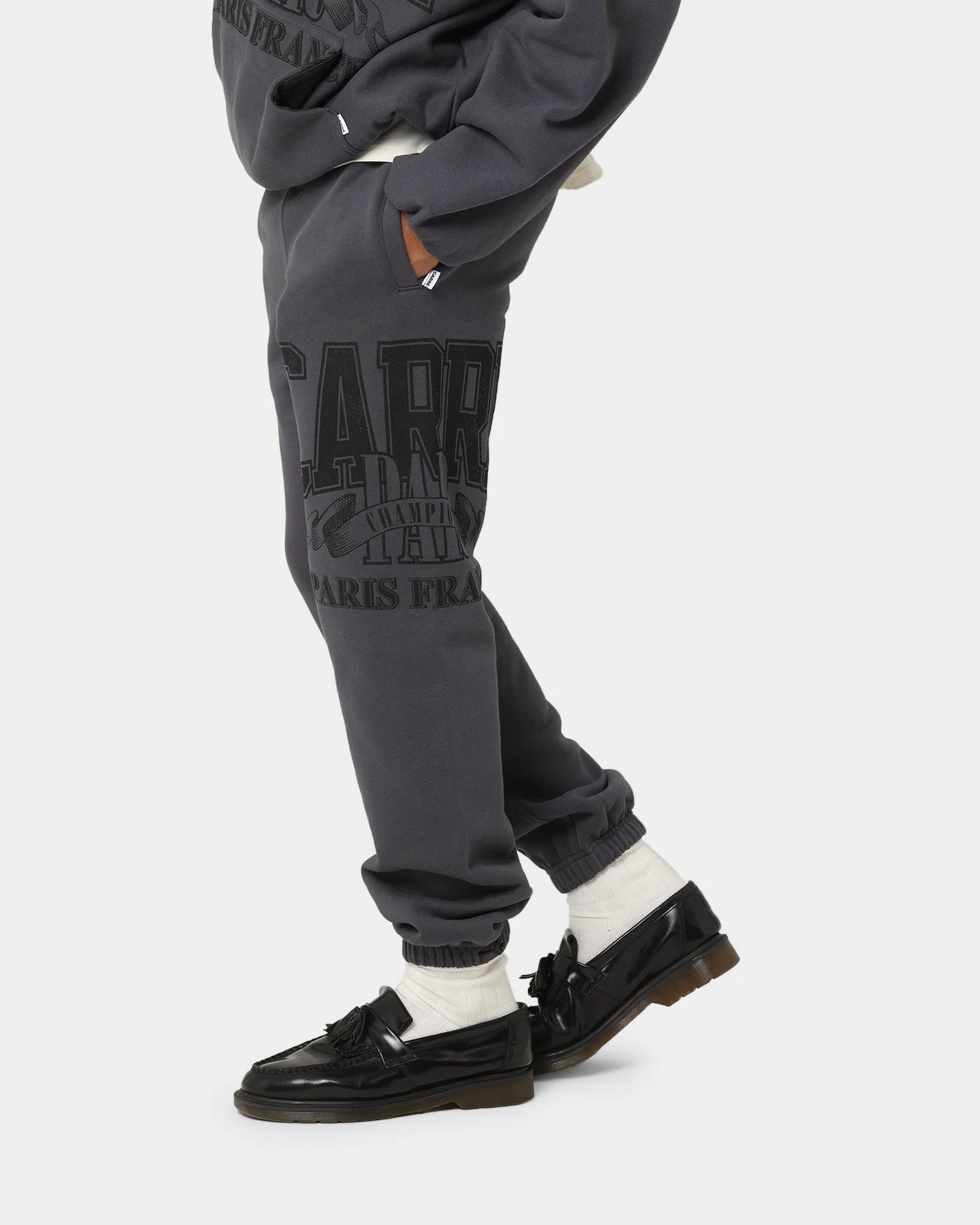 Step your winning foot forward in the Champs Baggy Sweat Pants. Bold graphics feature on the leg, with an elastic waistband and cuffs keeping the loose leg intact as you move about your day.