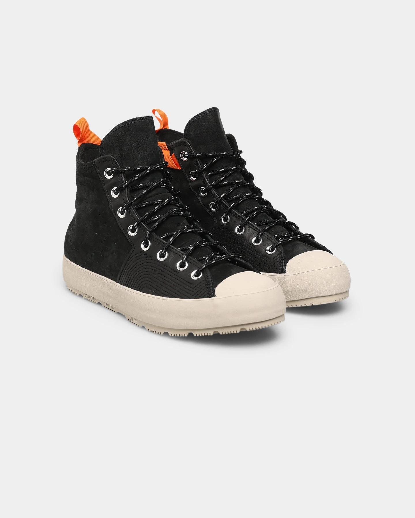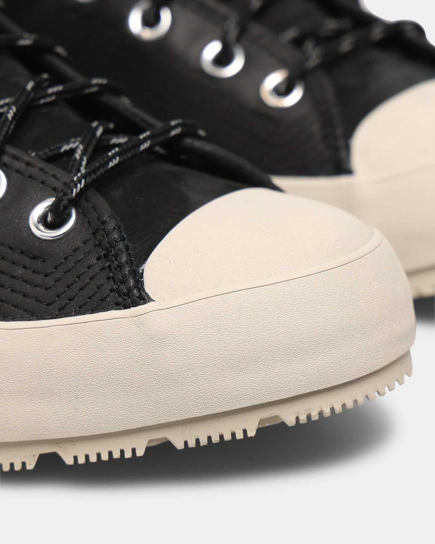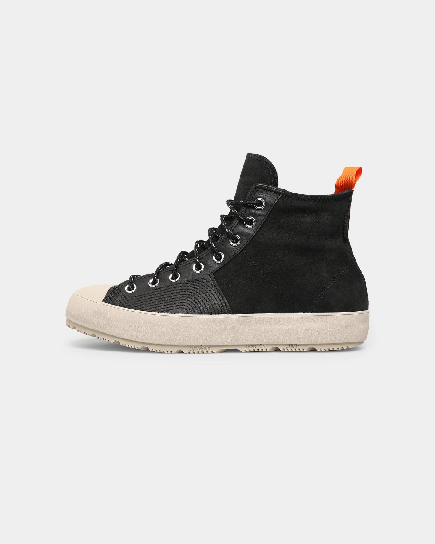 – Ticked laces, lugged sole, and webbing pull tab for hiking-inspired look