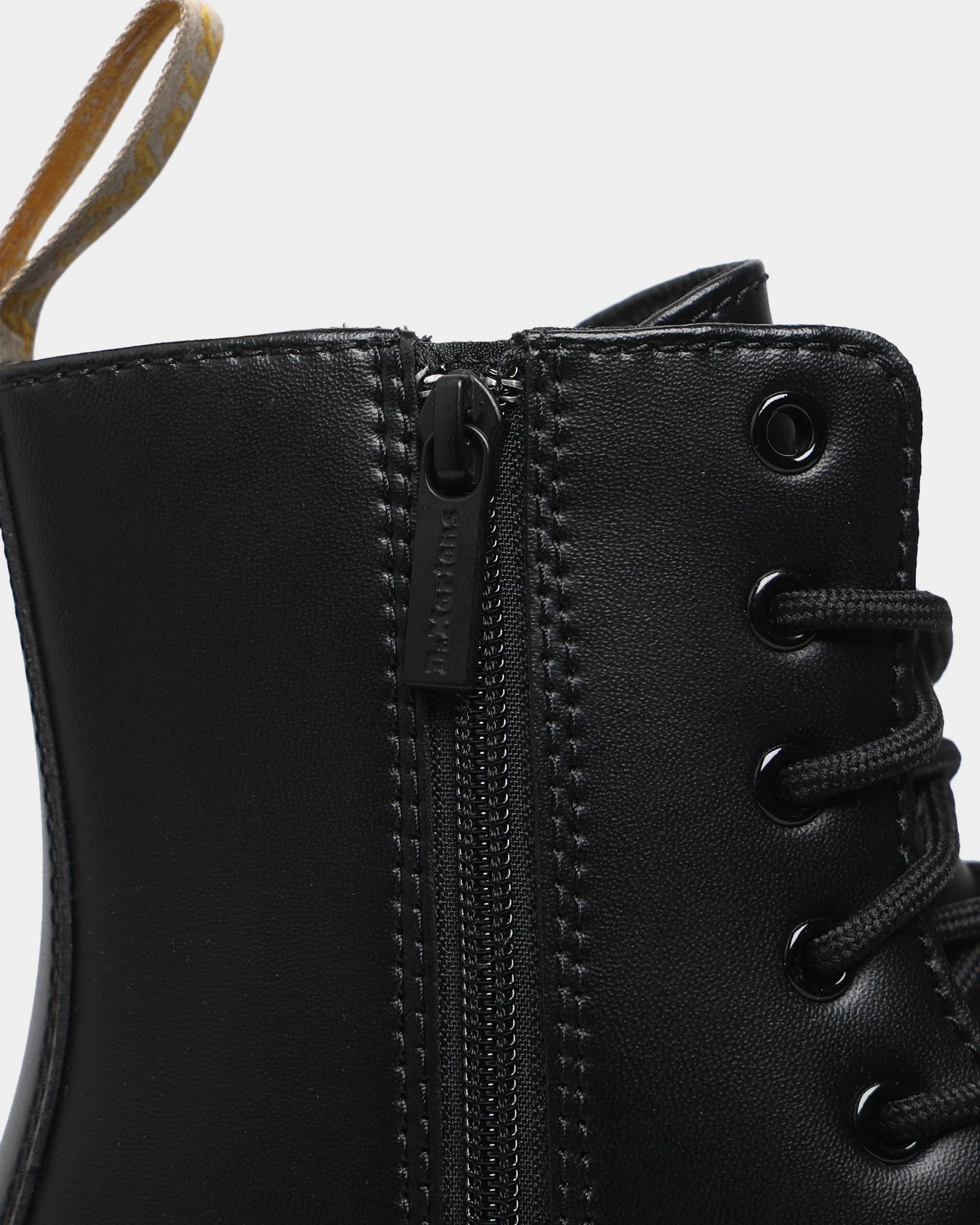 Vegan Jadon II Mono 8 Eye Boot are good for your ‘fits and your sole with their vegan synthetic uppers. Paired with a towering platform sole, all black monochromatic look, and matte finish. Cop a pair and make your statement today!