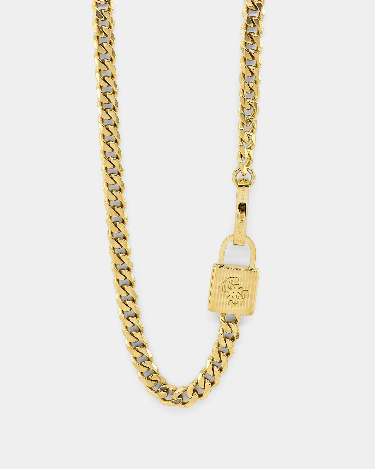 Luxe up your look with the latest drop of Guess accessories at Culture Kings. The Lock N’ Roll 14mm Curb Chain is a must-cop for a sturdy and classic look, with a curb chain link and lobster clasp closure, a metal padlock detail and gold plating give a standout look. This piece is finished on a stainless steel base so you know it’s worth it. Cop yours today.