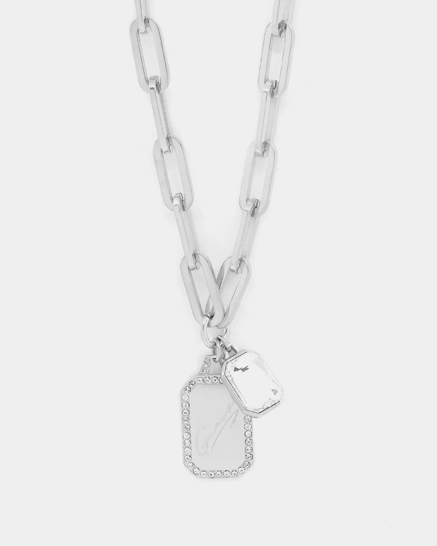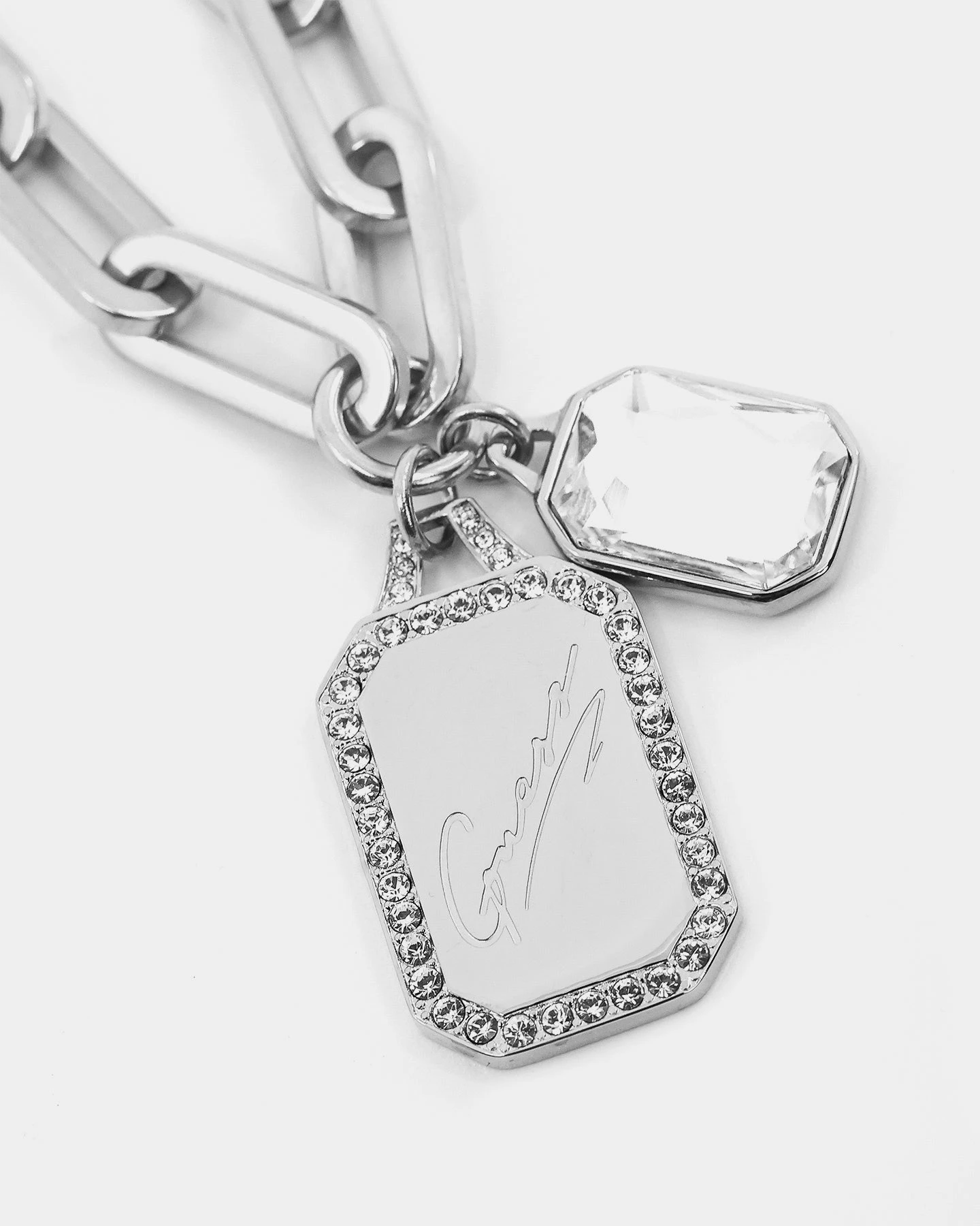 – Cursive Guess engraving on one pendant