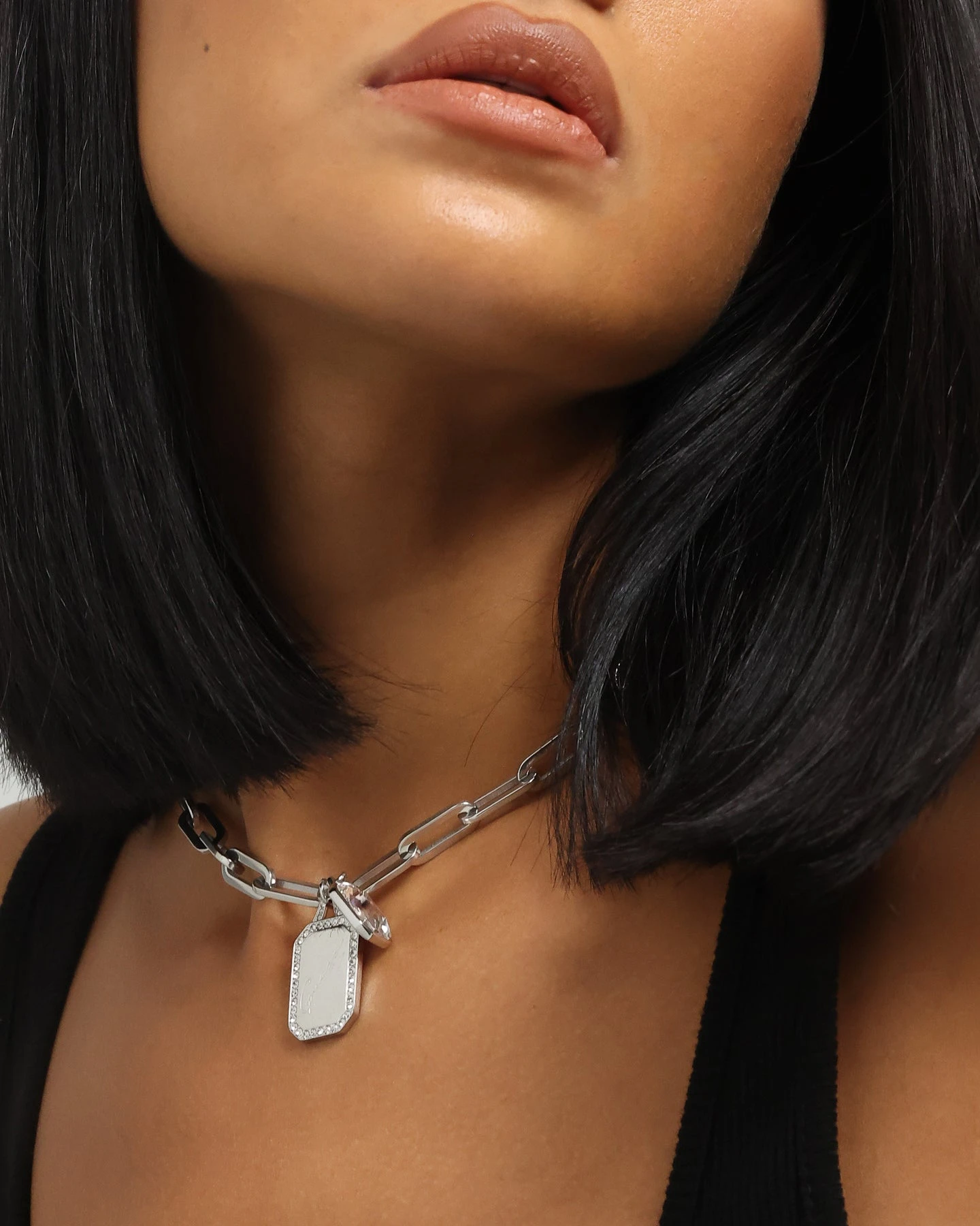 Stand out from the crowd with the Women’s Single Chain Tag 15-17″ Choker Necklace from Guess. With its rectangle cable chain, dog-tag style pendants, and crystal detailing you’ll elevate any ‘fit it’s worn with. Cop yours today!