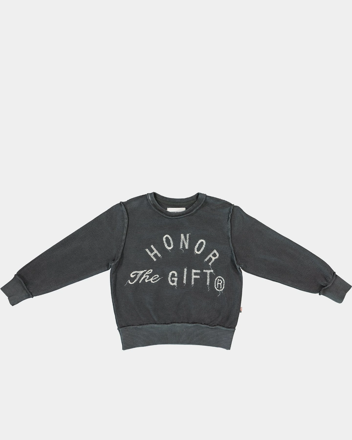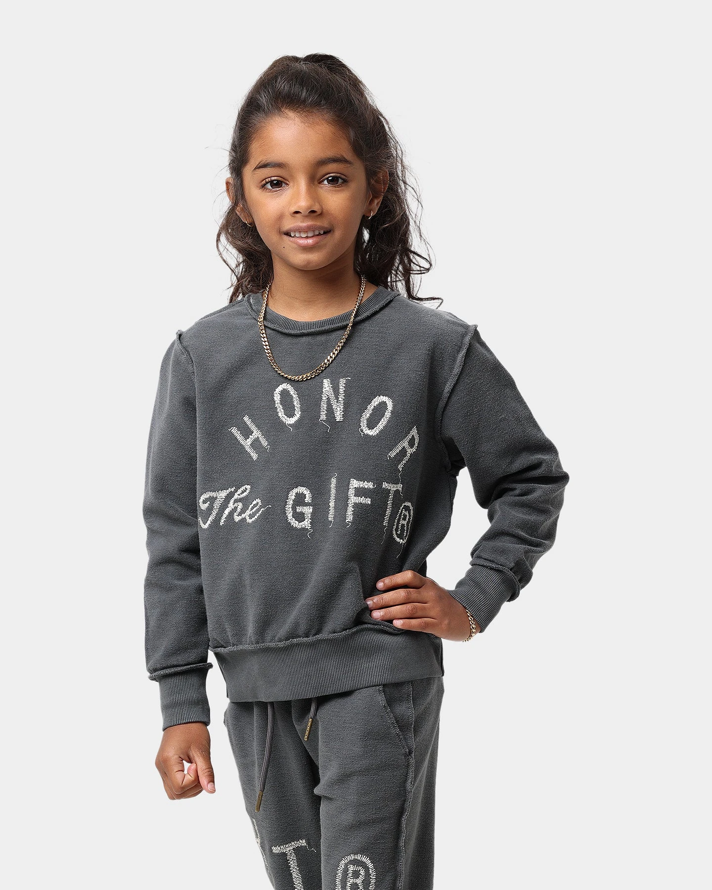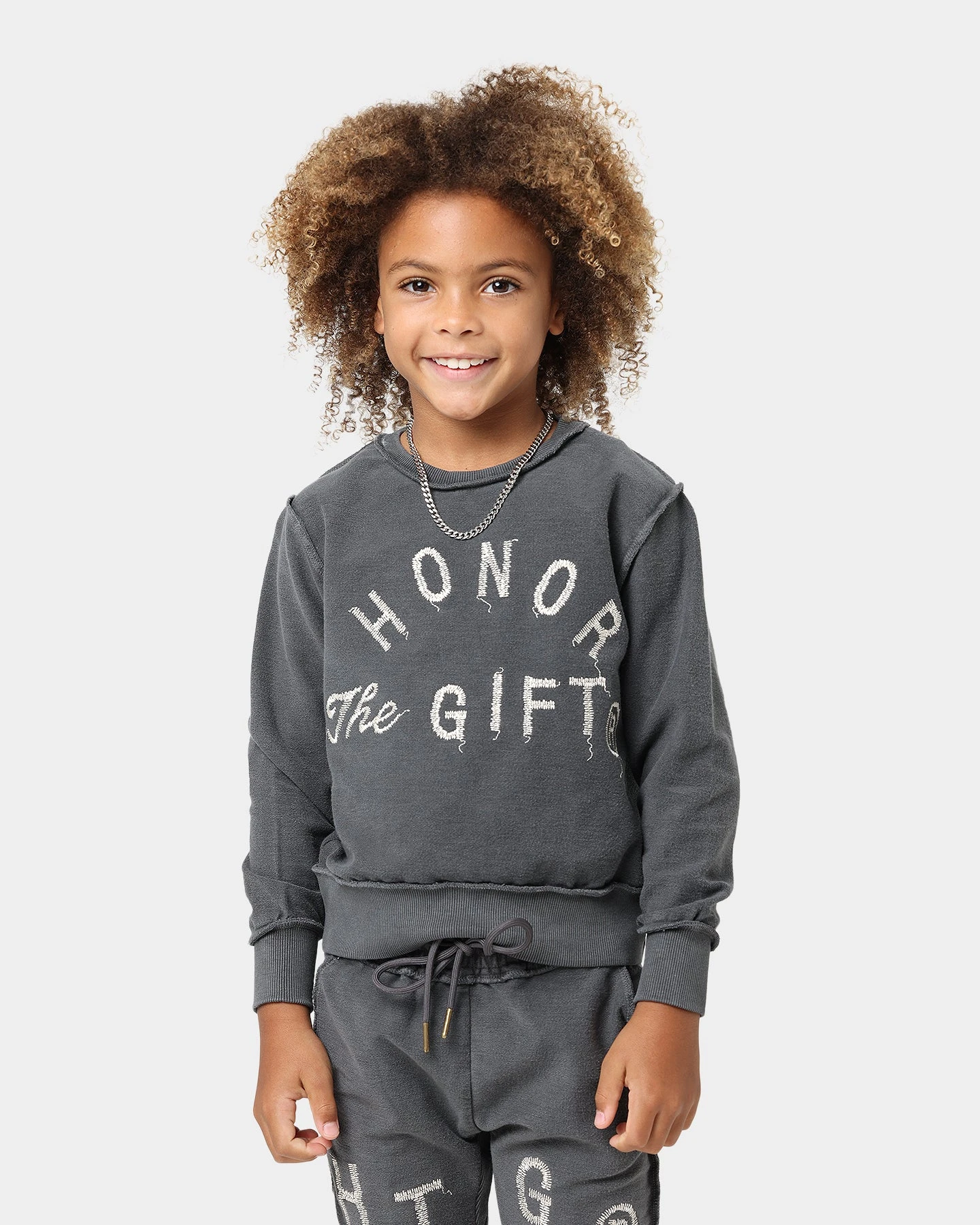 Honour your kid with the latest drop from Honor The Gift. This Kids’ Holiday Weathered Crewneck features a pre-weathered embroidered logo to the front. It is also made with a premium construction that is soft and breathable and has a durable make with twin needle stitching on the hem and cuffs.