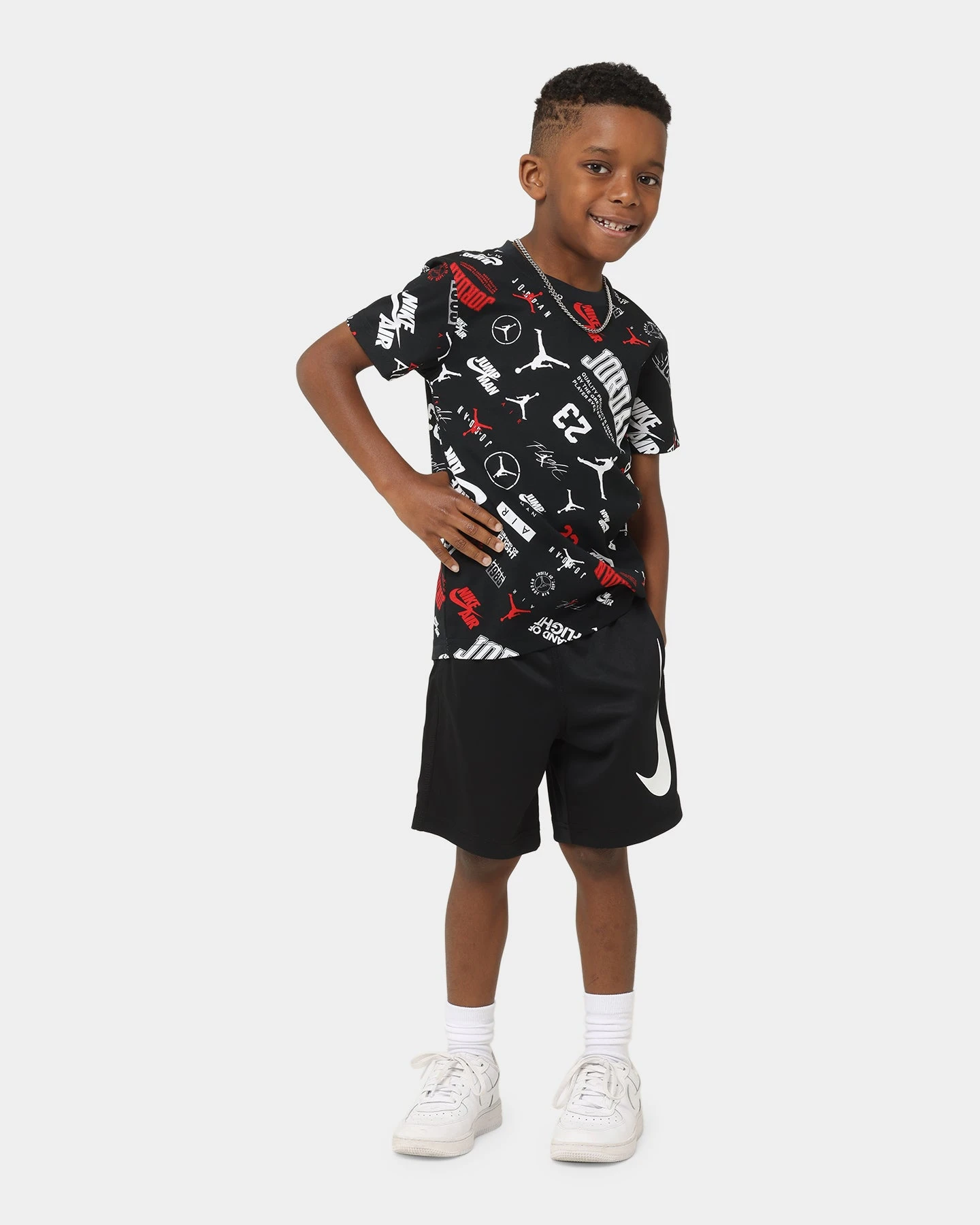 Have your kiddo looking straight fire with the Kids’ Level Up All Over Print Graphic T-Shirt from Jordan. Featuring an all-over print for a stand-out look, this tee keeps your little one comfy with a ribbed crewneck and twin needle stitching for durability. Get your hands on this today!