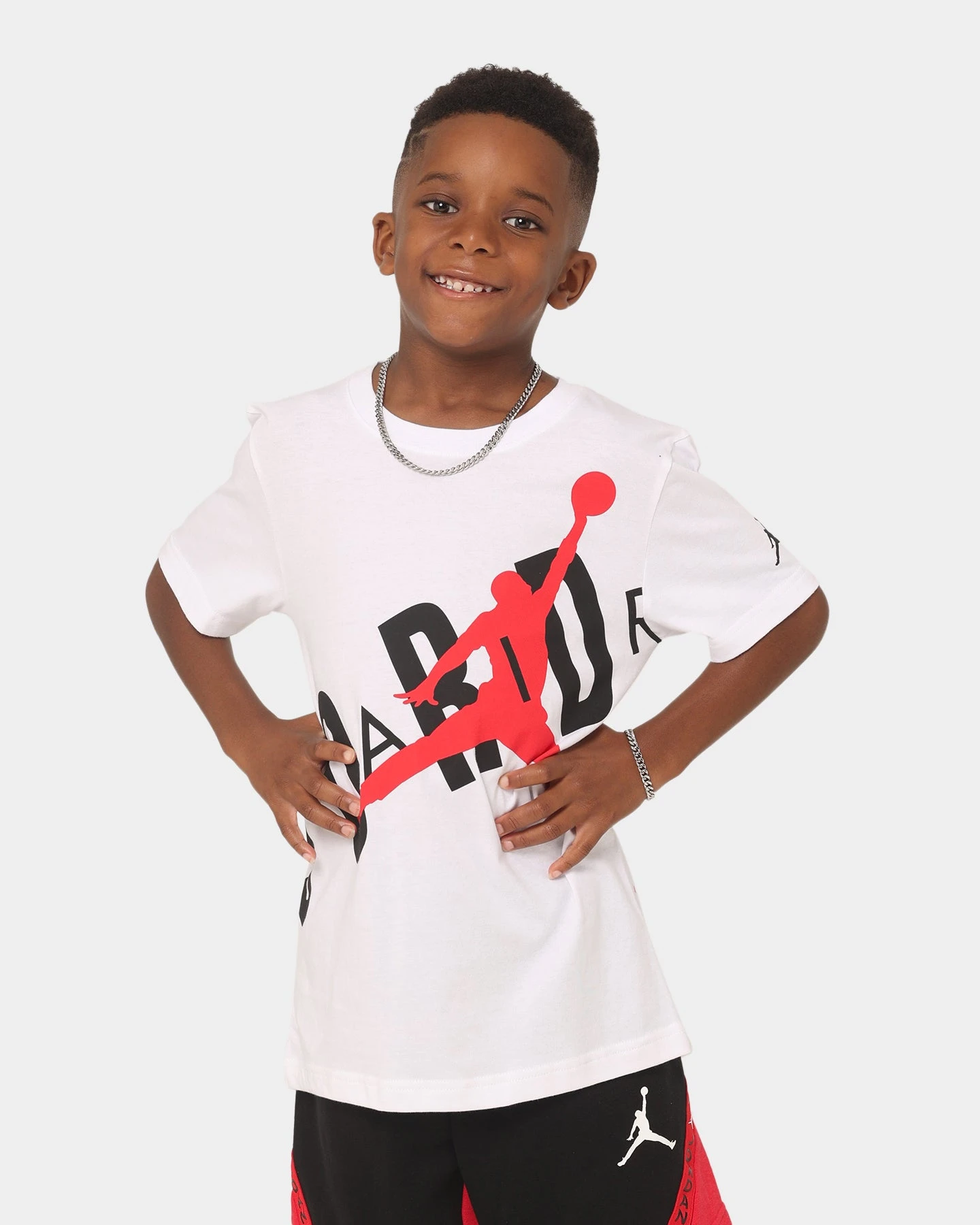 Have your kiddo looking straight fire in these graphic tee from Jordan Brand! The Kids’ Throw Back Graphic T-Shirt features printed graphics on a super soft cotton tee, to have your young one looking and feeling good. With a ribbed crewneck and twin needle stitching to make sure this can last through the adventures of growing up. Cop it today at Culture Kings.