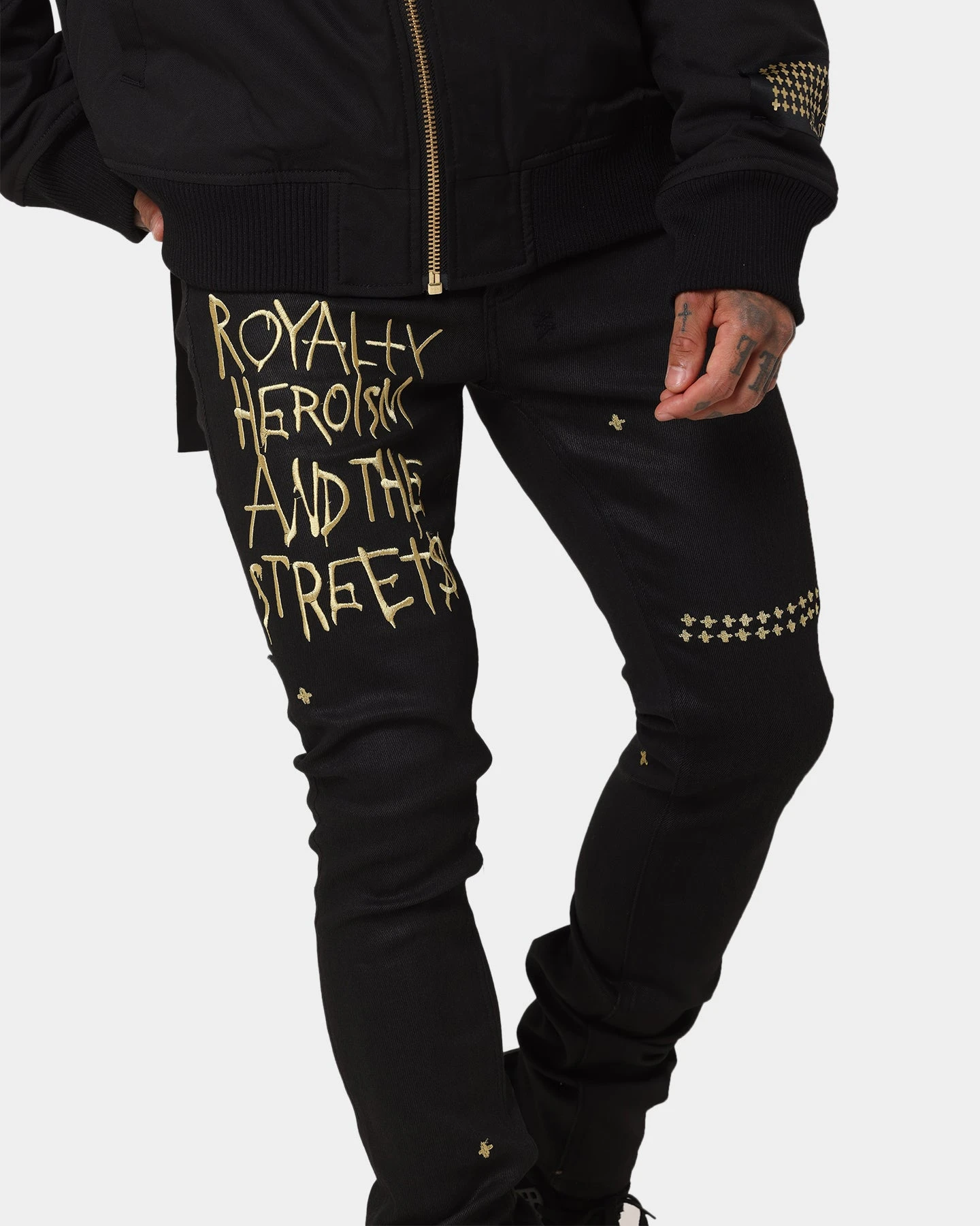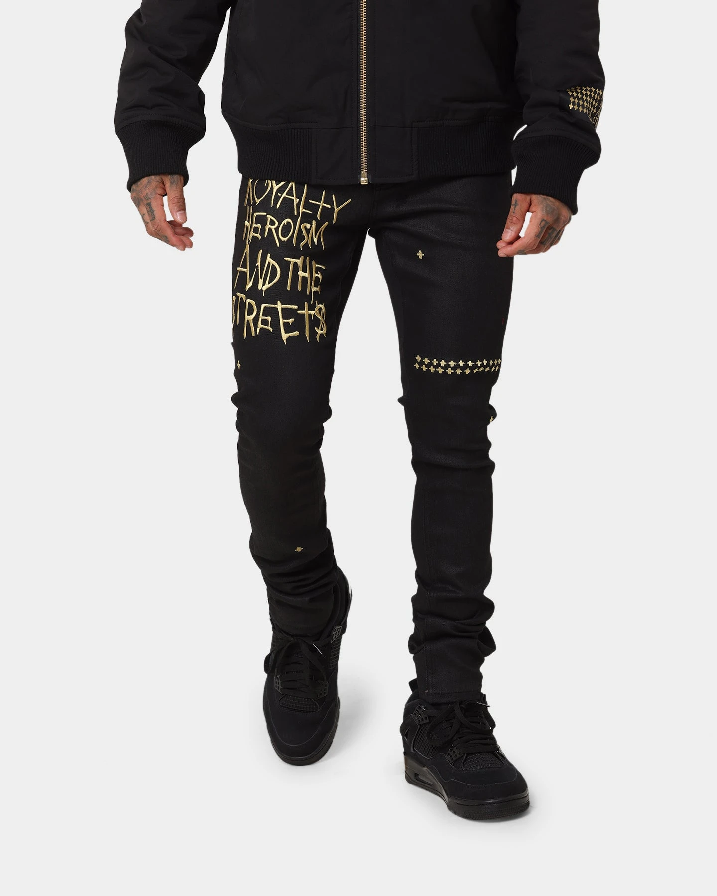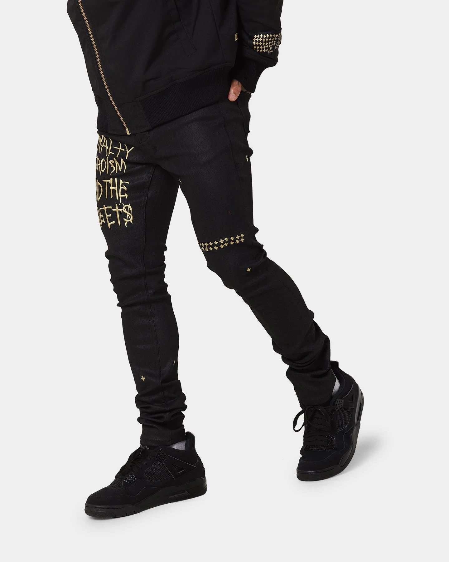 A super detailed look to stand out in the crowd and elevate your look, the Ksubi 23 Van Winkle Jet Black Denim Pants are a must-have in your denim. Featuring gold metal hardware, gold embroidery, and decked out in pockets for a style that is straight fire. Decked out in pockets, with belt loops, and a zip-fly closure to level up your standard jeans. Cop yours today!