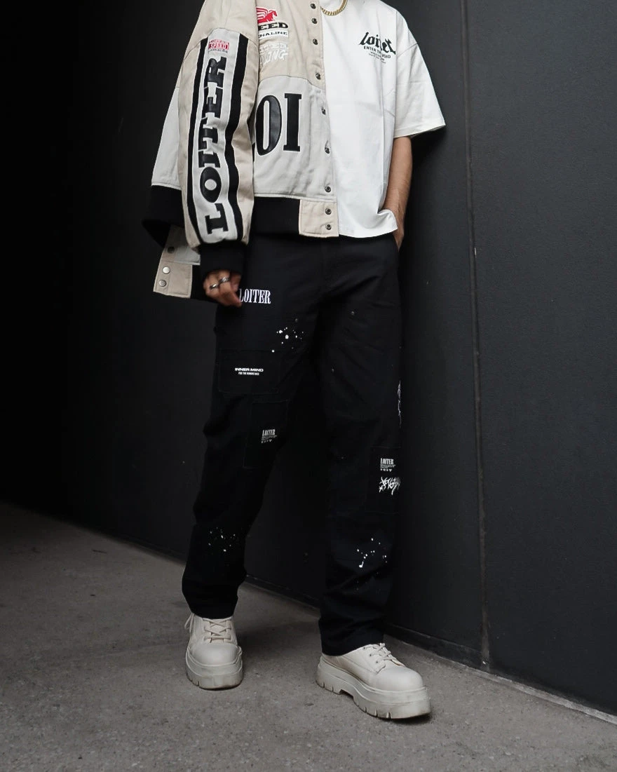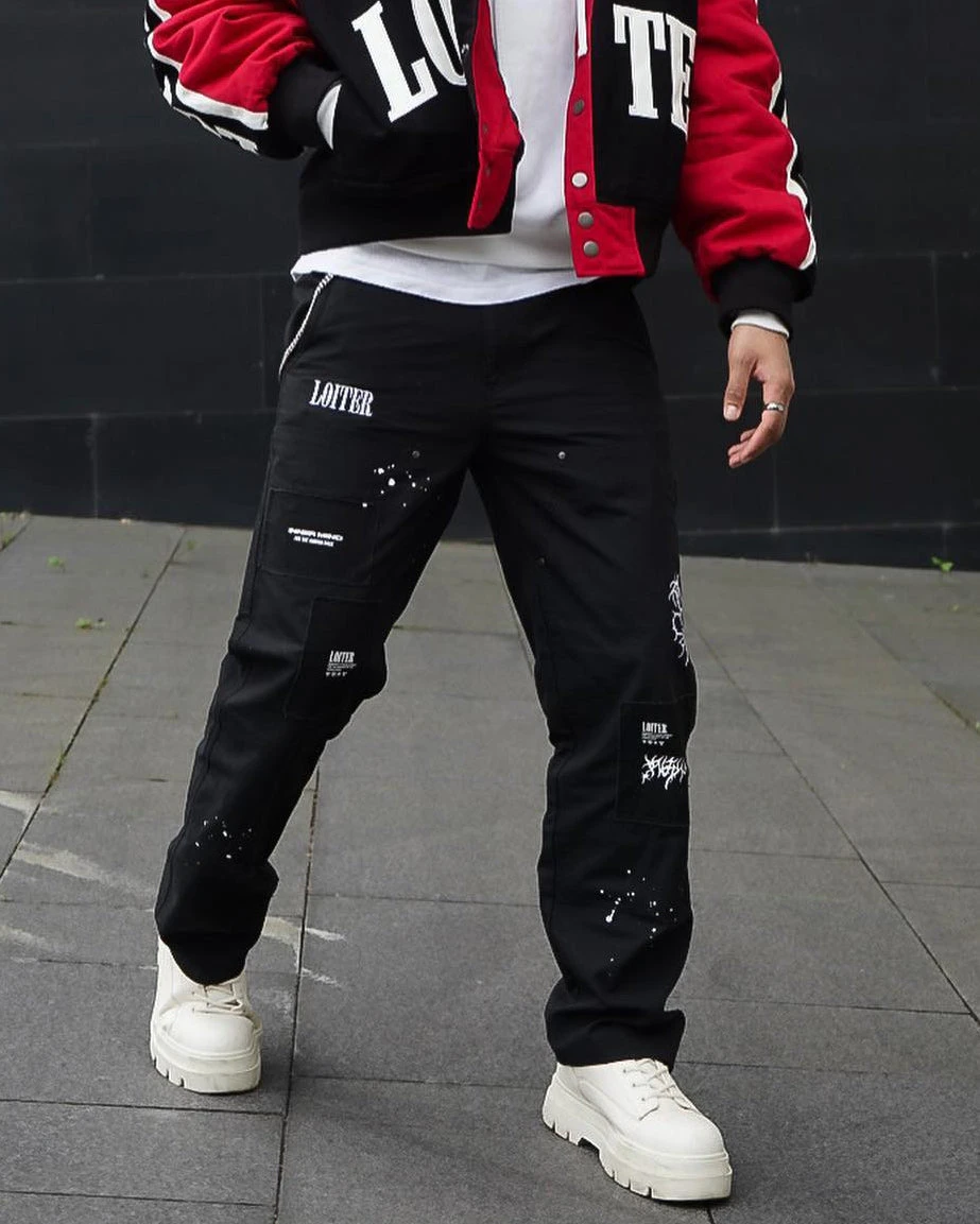 Loiter is levelling up your fashion game with the detailing on the Hunter Carpenter Pants. Paint splatter pairs with canvas appliques, with embroidered Loiter graphics all popping from the front. In a straight leg with bonus utility pockets and strap, these pants do the work for you. Cop yours today!