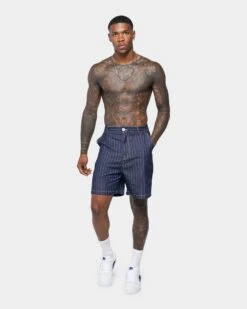 XXIII Maddox Pinstripe Worker Shorts Blue