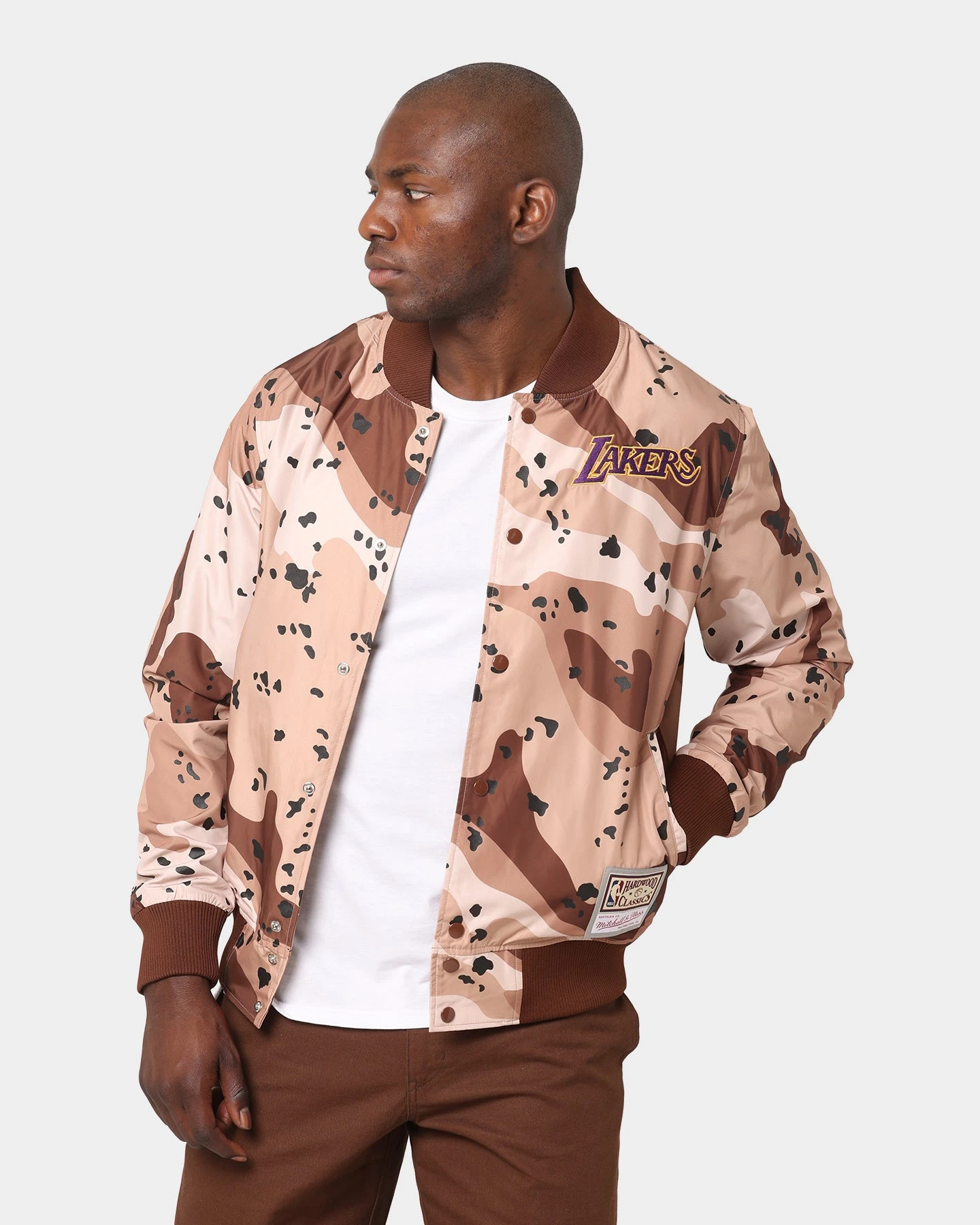 Top off your look with the Mitchell & Ness Los Angeles Lakers Camo Ref Jacket. The all-over camo print in shades of brown makes this jacket super on-trend. Pair it with the ribbed cuffs, collar, and hemline and standout team logos on the chest and back and you’ve got yourself a killer bomber jacket. Secure yours at Culture Kings while stocks last!
