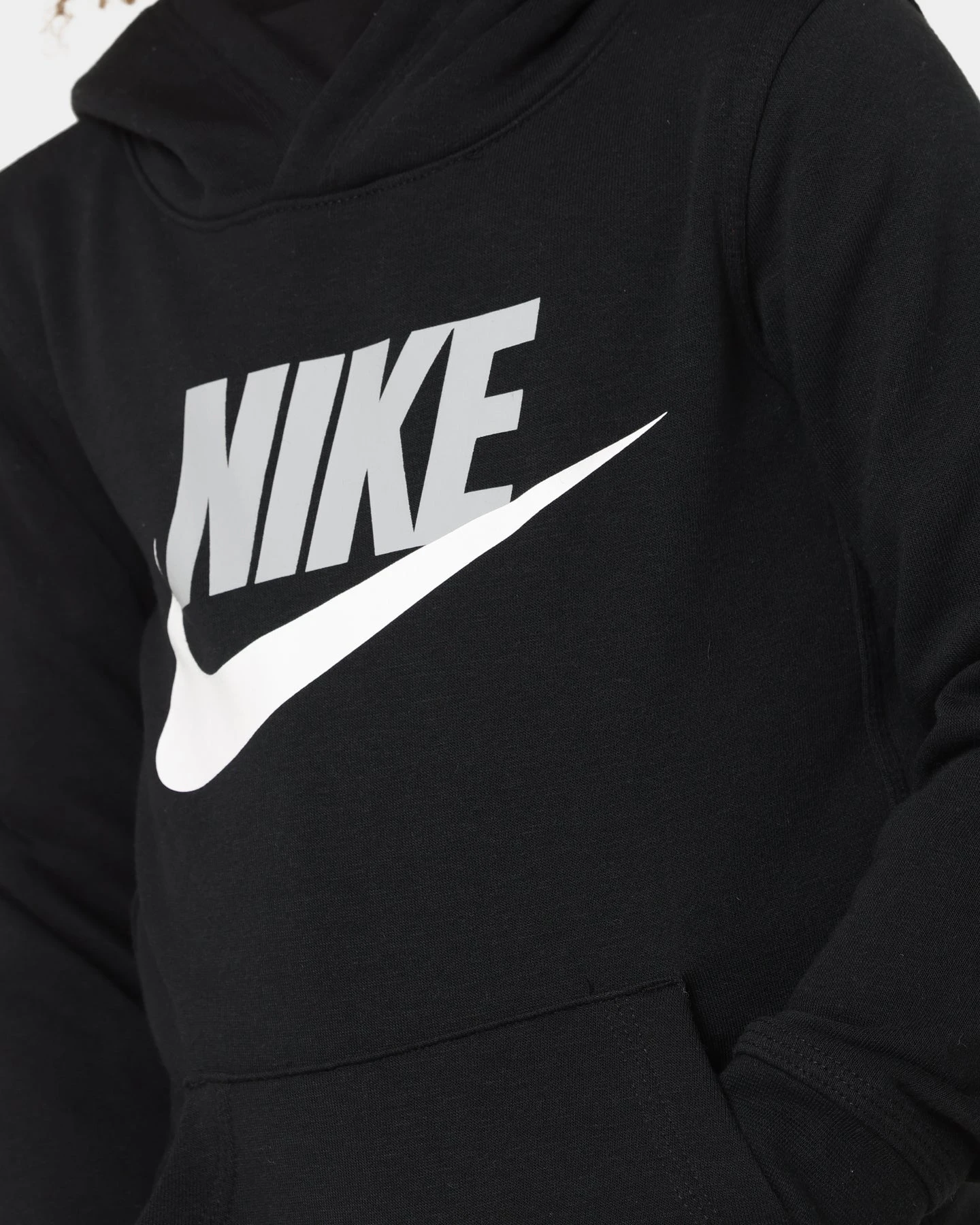 Comfy and soft, the Club HBR Pullover Hoodie is soon to be a favourite for you and your kid. A large Nike Swoosh graphic on the chest decorates the premium cotton construction. With a kangaroo pocket to the front and ribbed cuffs and hem, your little one will stay toasty warm.