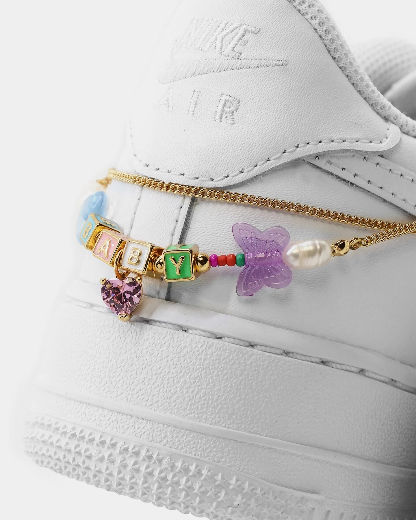 Customise your kicks with the Baby Beaded Shoe Chain from Raising Hell. These chains are designed to wrap around the heel, with lobster clasps to lock them in place. Featuring beading that gives off retro vibes, these shoe chains come in a pair so you can touch up both sneakers.