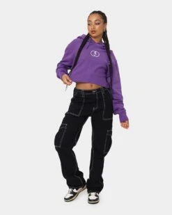 Crooks & Castles Women’s CC Logo Oversized Crop Hoodie Purple